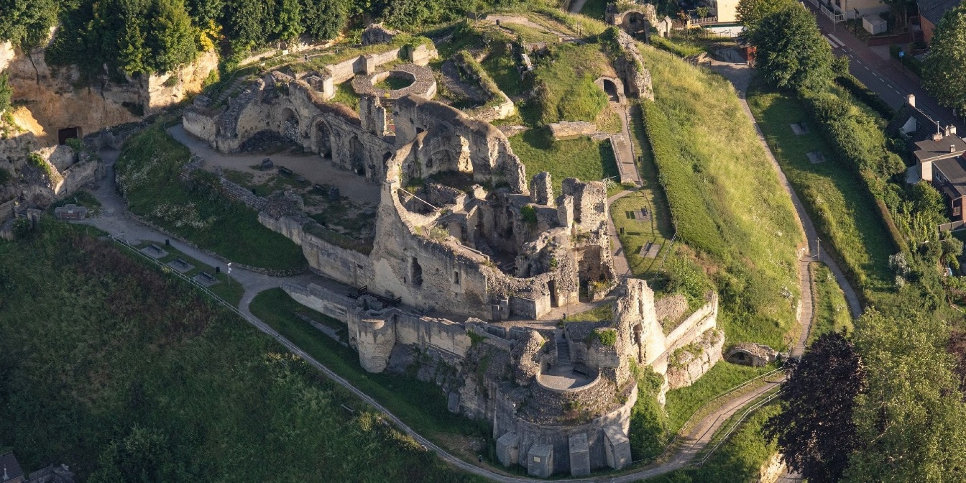 De vluchtgangen van de Fluweelengrot leiden naar de Kasteelruïne. Wandel door de ridderzaal, de wapenkamer en de kapel van Nederlands enige hoogteburcht; sinds 1050 het baken van Valkenburg en haar omgeving. Vele strijden werden er gestreden, maar in 1672 werd het opgeblazen in opdracht van Stadhouder Willem III.