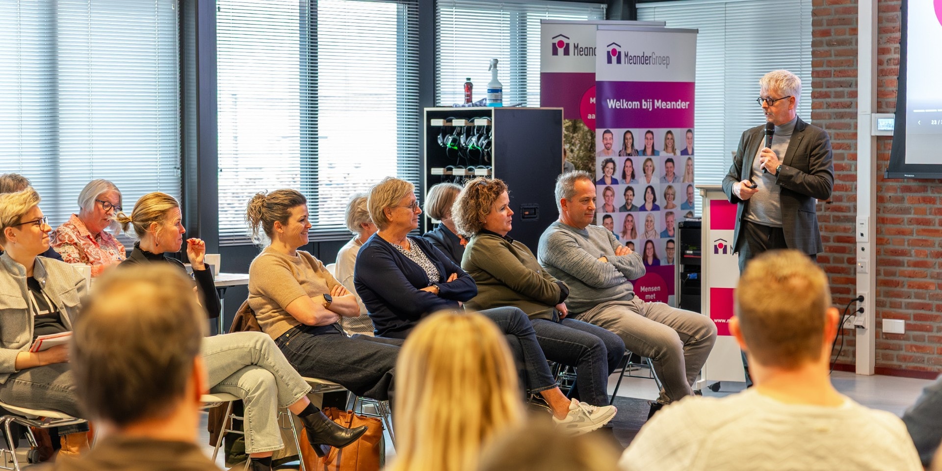 Op 28 januari kwamen op uitnodiging van de Centrale Cliëntenraad, de leden van alle cliëntenraden, bestuurders, directeuren, managers en afgevaardigden van de Vakinhoudelijke Adviesraad en Ondernemingsraad samen tijdens de jaarlijkse themamiddag van de medezeggenschap voor cliënten en bewoners van MeanderGroep. Op het programma stonden onder meer de evaluatie van de medezeggenschap, de herijkte strategie van Meander en het belang van het versterken van de informele zorg in de zogenaamde gouden driehoek. Met voor dit laatste een waardevol interview met een naaste van een bewoner van een van onze locaties over zijn belangrijke rol in de gouden driehoek. Een mooi gesprek waarin ook een van de managers van de locatie aangaf hoe belangrijk de rol van de naaste is voor de kwaliteit van zorg en welzijn van de bewoner. Maar bovenal stond de middag in het teken van ontmoeting, reflectie en de belofte van gezamenlijke verantwoordelijkheid.