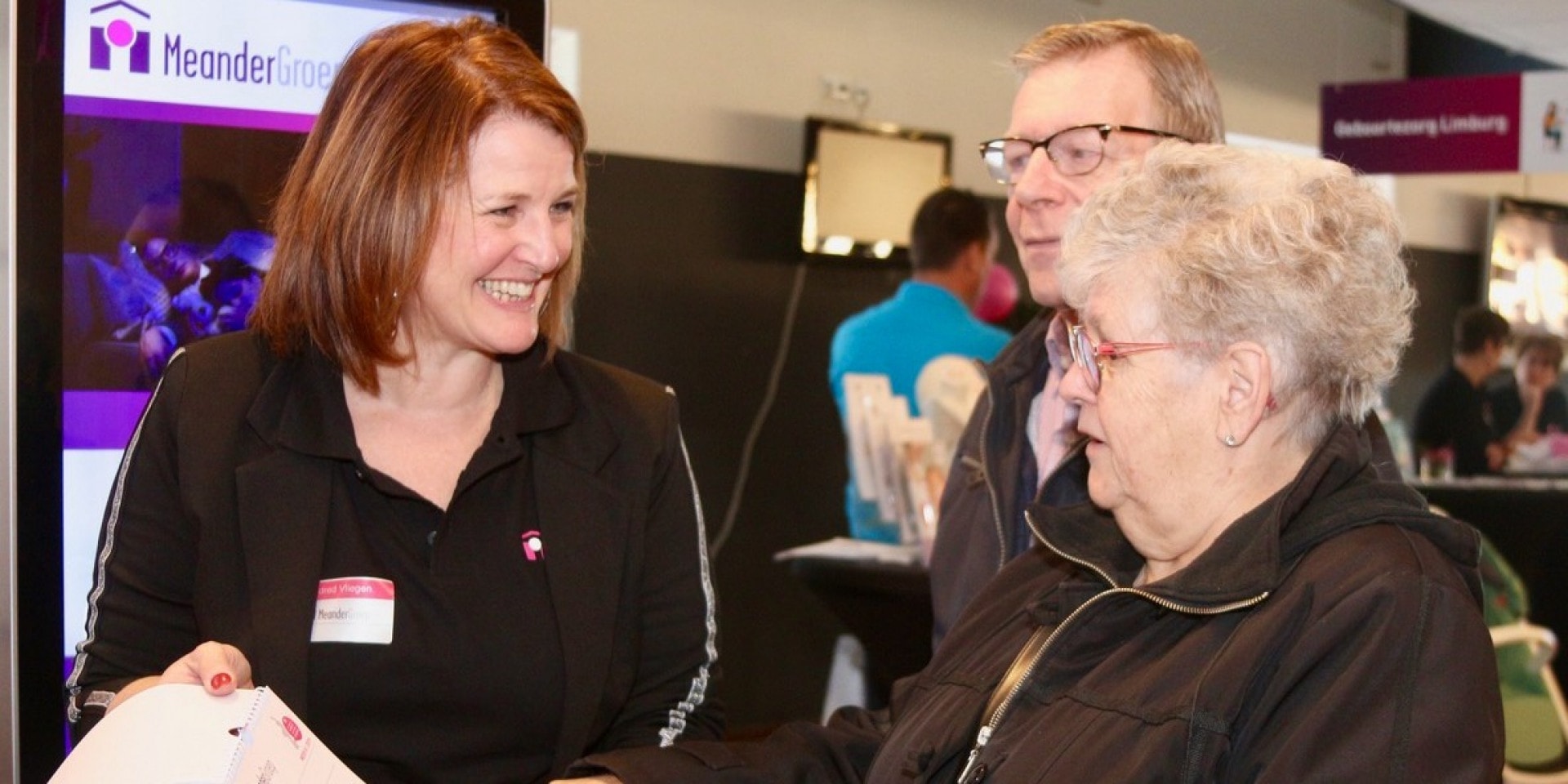 Zoveel mensen, zoveel verhalen. Dat is Meander in een notendop. Verdriet kan niet worden weggenomen. Maar wel biedt Meander de begeleiding die soms zo hard nodig is. Of dat nu thuis is, op een dagbesteding of in een van de wijkzorgcentra of verpleeghuizen. En dat werd vandaag volop getoond. Door Meander-collega’s met aandacht voor de bezoeker. Want dat is waar het in de zorg om draait. “Het is zo fijn dat iedereen hier de tijd voor je neemt om je vragen te beantwoorden”, aldus mevrouw Jakobs uit Brunssum. “Ik kan wel bellen voor informatie, maar dit werkt een stuk persoonlijker. Nu kan ik het ook veel beter onthouden!”