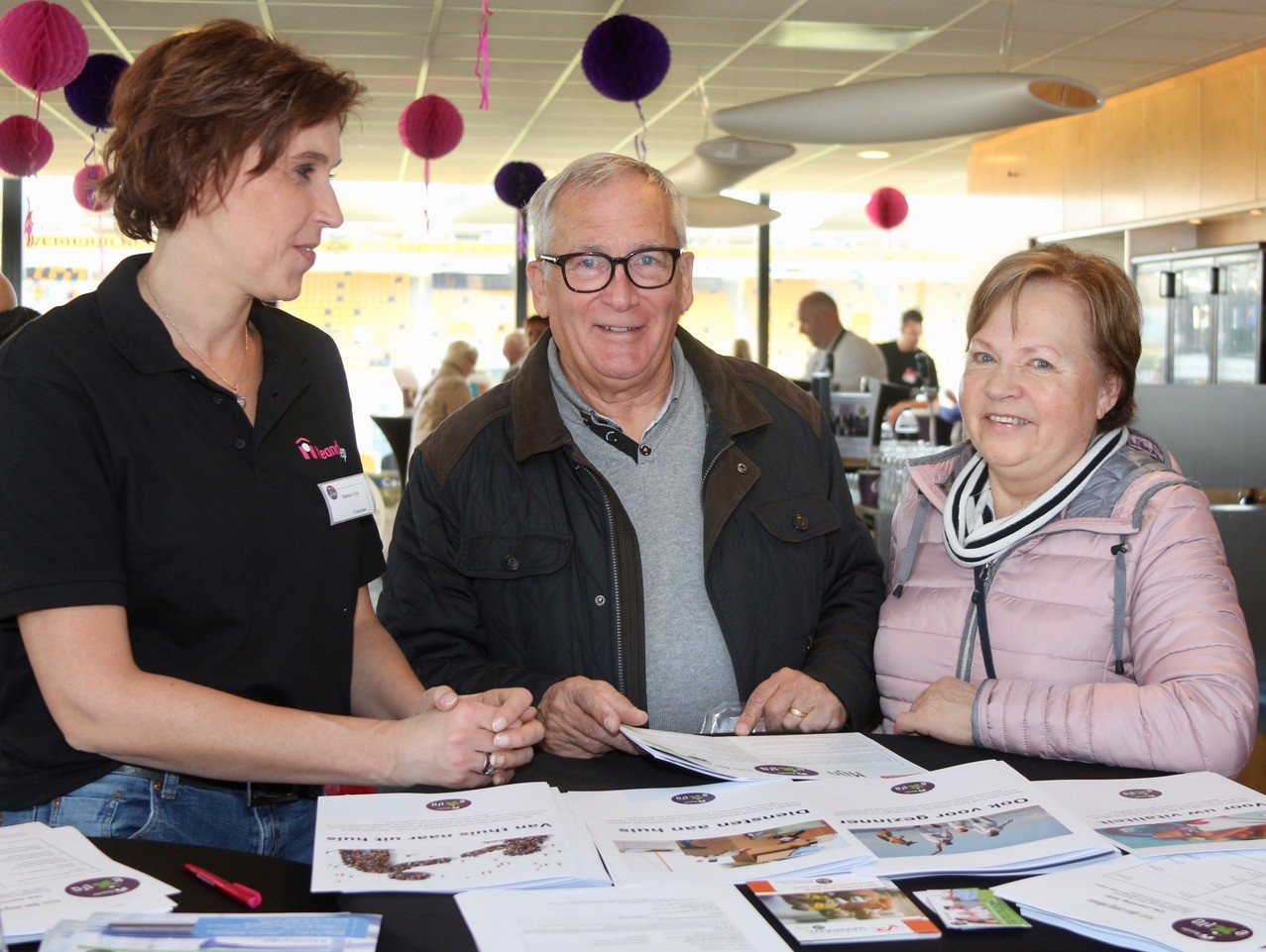 Het was gezellig druk tijdens de achtste editie van de Parkstad Zorgbeurs op zaterdag 3 november jl. in het Parkstad Limburg Stadion in Kerkrade. MeanderGroep koos dit jaar voor een andere opzet en dat sloeg aan. Als bezoeker liep je de route door het leven: van de geboorte tot het ouder worden. Naast de diverse ‘stands’ waren er twee huiskamers ingericht waar je thuiszorg én de zorg in een wijkzorgcentrum of verpleeghuis kon beleven. “Voor mij is dit echt een middagje uit”, zegt de heer Reuselaers uit Heerlen.