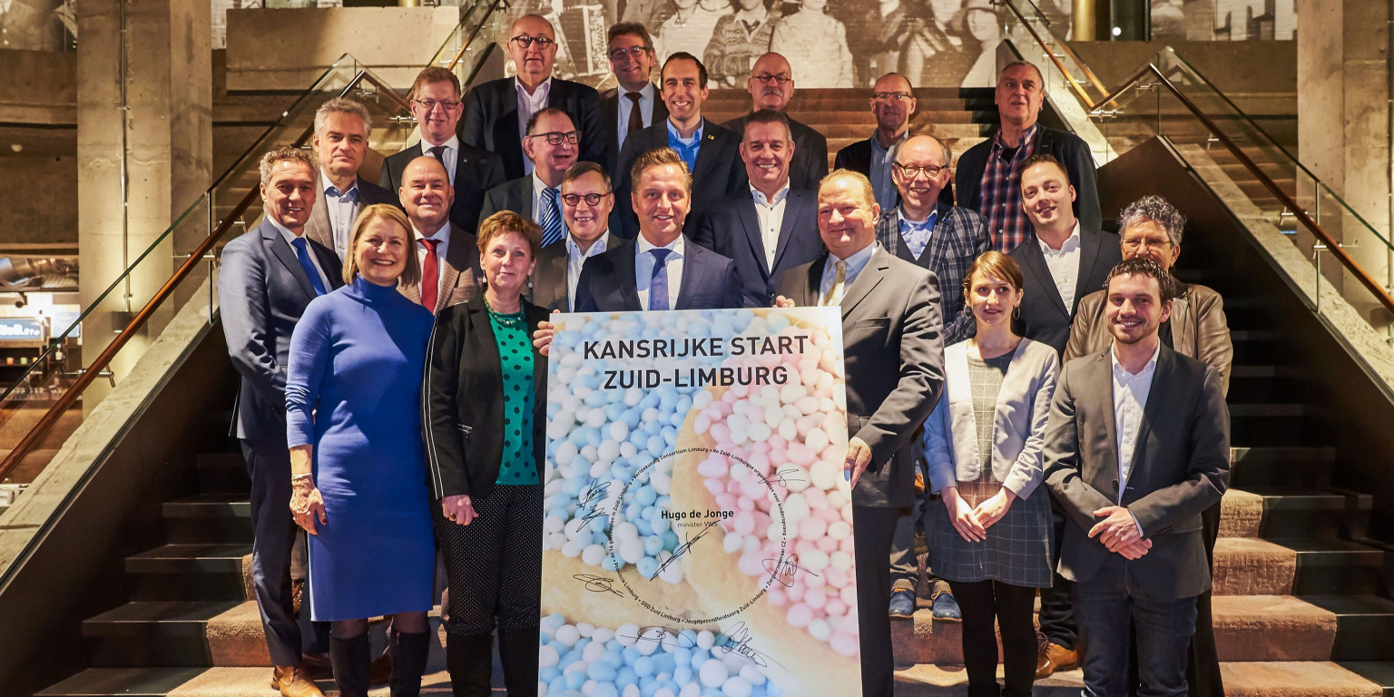 ‘Kansrijke Start Zuid-Limburg’. Inclusief minister Hugo de Jonge van Volksgezondheid, Welzijn en Sport, die duidelijk enthousiast is over de samenwerking in Zuid-Limburg.