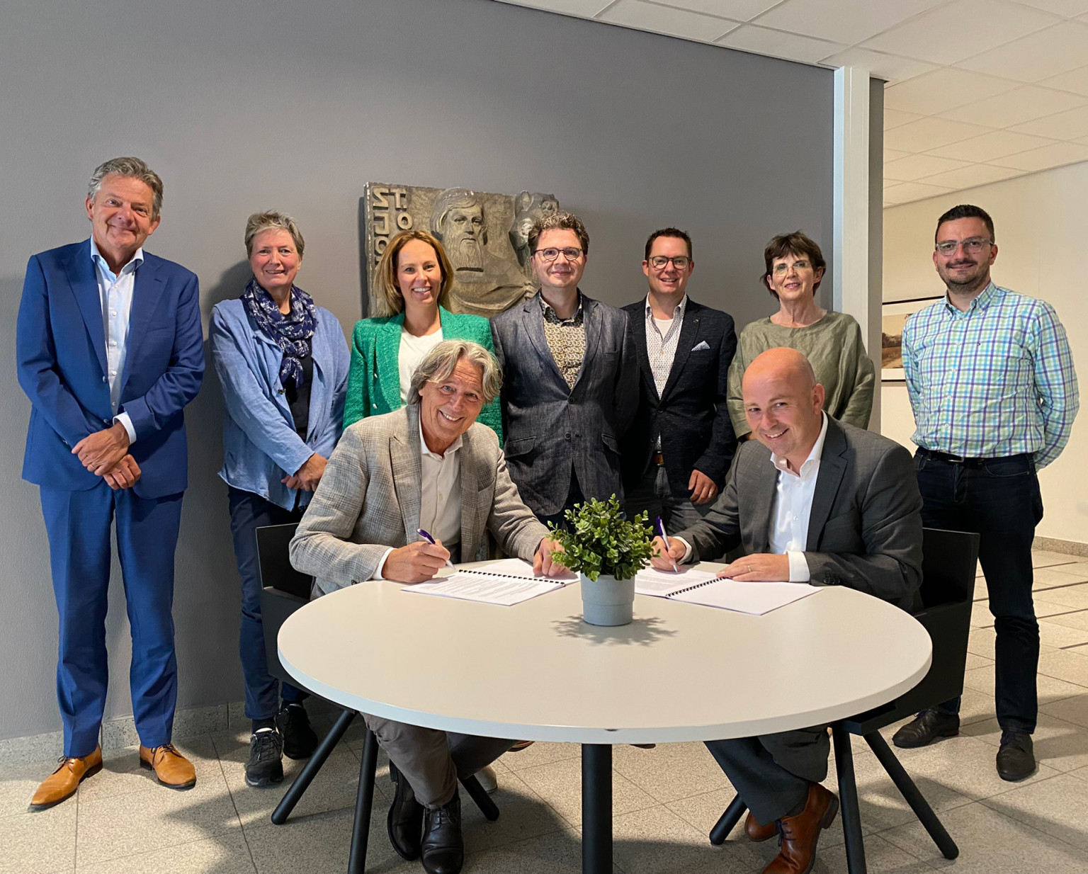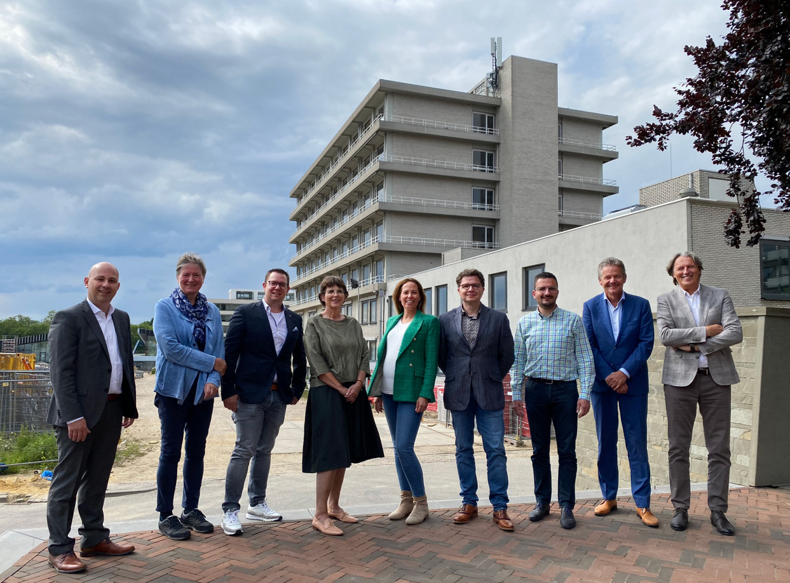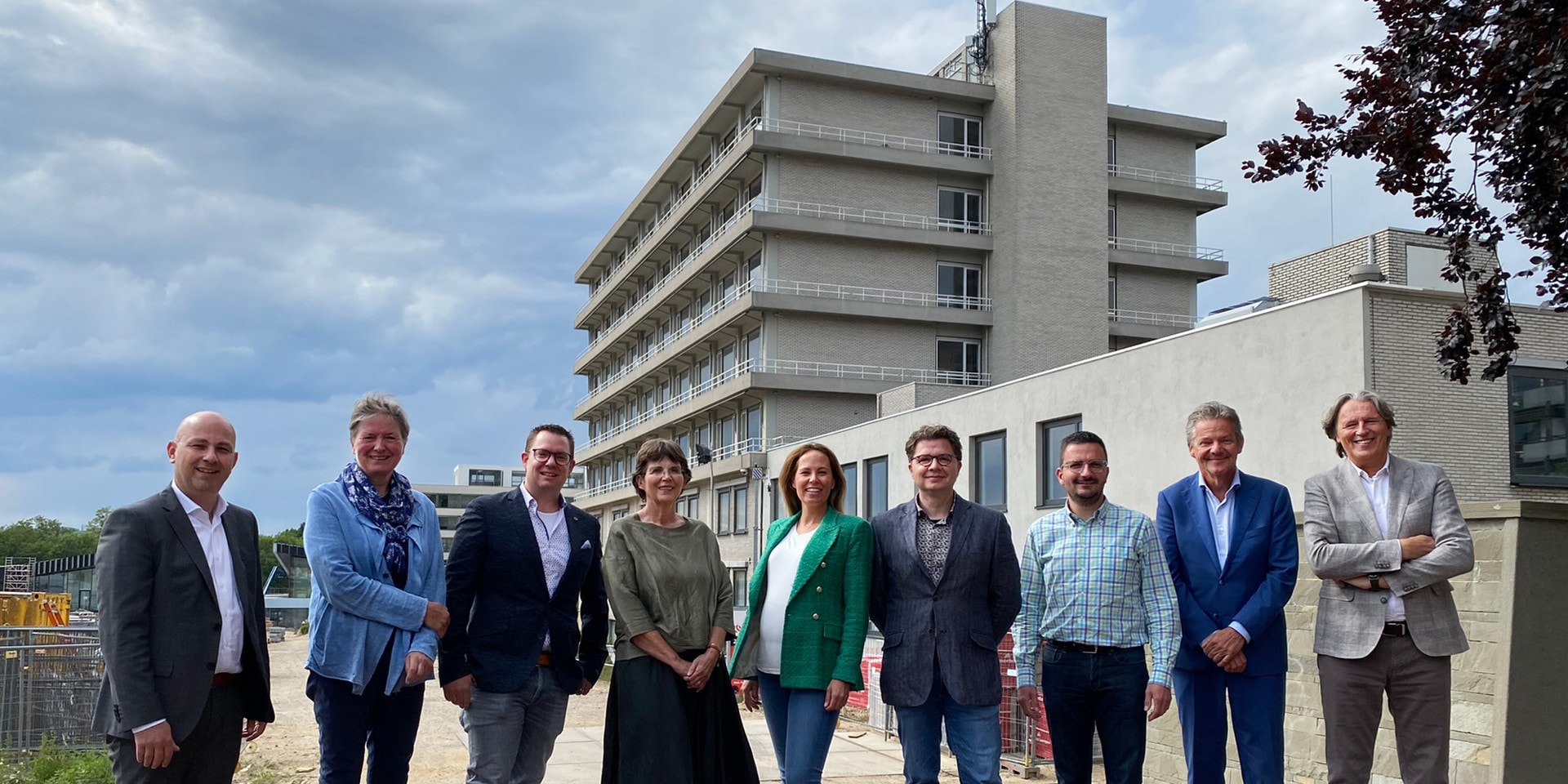 Michael Ehlen, Monique Hermans (clusterdirecteur Wijkzorgcentra), Rik Bruinsma (manager Vroenhof), Yvonne Vroomen (cliëntenraad), Valeska Bruins (Wyckerveste), Gilbert Tychon, Roy Packbeers (projectmanager Vastgoed), Jack Jansen (bestuursvoorzitter MeanderGroep) en Hessel Meijer (Wyckerveste).
